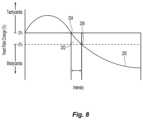 Shown inFIG.8 is a graphic illustration of the neural fulcrum zone and heart rate change response as a function of increasing vagus nerve stimulation signal intensity and constant frequency. The x-axis represents the intensity level of the stimulation signal, and the y-axis represents the observed heart rate change from the patient's baseline basal heart rate observed when no stimulation is delivered. The patient's heartrate change response200 is depicted as depending on the stimulation signal intensity. As the intensity (e.g., output current amplitude) is increased, a tachycardia zone is observed. Thisresponse200 is more or less pronounced depending on the other stimulation parameters. As the intensity continues to be increased, the patient's heartrate change response200 begins to decrease and eventually enters a bradycardia zone. The neural fulcrum zone is depicted as theresponse zone202 between noheart rate change 0% (occurring at point204) and a heart rate reduction of 5% (occurring at point206).