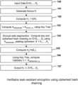 In this embodiment, the hashes of the plaintext are chained, with plaintext segment Bi containing the hash of theplaintext Bi−1. This chaining, while not strictly necessary for leakage resistance, provides the additional property that any faults that occur during the decryption process can be detected because the plaintext is verified to be that same as what was encrypted. Thus, this embodiment is advantageous for use in environments where there is potential for corruption the decryption process.