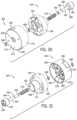 Referring still toFIG.33, themovable members290 may be biased radially outwardly by the one ormore bias members294, such as springs. Thebias members294 may be oriented perpendicularly to a longitudinal axis of thecap assembly262 and may be disposed between themovable members290 and ahollow stub shaft296 of theknob272, which may extend axially away from thebase plate274 in a distal direction. A radially-inward end294aof thebias members294 may be seated against thestub shaft296, and a radially-outward end294bof thebias members294 may be seated against the respectivemovable members290. A portion of thebias members294 may be received within aninner cavity298 of themovable members290, which may open to thestub shaft296.