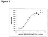 FIG.6 shows sandwich ELISA data with anti-MAdCAM antibodies 1.7.2 and an Alexa 488-labelled 7.16.6, showing that two antibodies that are able to detect different epitopes on MAdCAM could be used to detect soluble MAdCAM for diagnostic purposes.