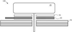 Also, above thetop side31 of theskin adhesive30 and below thebottom side22 of thedurable component20, thedevice100 includes aninterface component60. Theinterface component60 includes atop side61 and an oppositebottom side62.