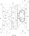 FIG.20B is an enlarged view of a Cell Group showing a first continuous pillow along an X-direction and a second continuous pillow along a Y-direction, where the Cell Group is staggered, where the X-axis is not perpendicular with the Y-axis;
