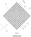 The previously marketed BOUNTY® paper towel product shown inFIG.2 has a pattern of discrete knuckles and a continuous pillow region. As more clearly seen in the mask ofFIG.3, thecell24 shape and orientation are both constant and the cells are ordered instraight rows26,28. One set ofrows26 is oriented in a direction that is parallel to the X-axis (i.e., in an X-direction) and one set ofrows28 is oriented in a direction that is parallel to the Y-axis (i.e., in a Y-direction). In other words, allcells24 of the mask/fibrous structure will be a member of arow26 that is oriented in an X-direction and will also be a member of arow28 that is oriented in a Y-direction. Thecell24 knuckle size varies but the Distance Between Cells (as detailed below below) is constant. In other previously and currently marketed BOUNTY® paper towels (not illustrated), the fibrous structure patterns included a constant knuckle size and a varied Distance Between Cells, or patterns where both the knuckle size and the Distance Between Cells varied.