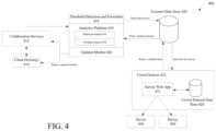 During operation ofcollaboration services412 via client device(s)414, media data fromclient devices414 can be received byanalytics platform410, which can be a data processing engine.Analytics platform410 can analyze the media data with one or more deployed models, which uses deployed dataset416 as the basis for its analysis. Some audio clips will be analyzed by the deployed models at high accuracies, e.g., 98% accuracy. Those audio clips will remain as part of deployed dataset416, and will be used as normally inanalytics platform410 and/orcollaboration services412. However, some amount of media data will be uncertain. For example, one or more audio clips may be analyzed within some range of accuracies less than ideal, where the range of accuracies can be some configurable limit. For example, an audio clip may be analyzed as “Hi Spark!” with only a 65-75% accuracy. Uncertain data in this accuracy range, then, can be used in an automated process to re-train, modify, and/or correct the deployed models.