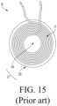 FIG.14 is an image of a prior art standardized MP-A2 Tx coil10, which is often used for Qi™-compatible wireless power applications. Shown is the Txcoil wire structure11 and a shielding12 positioned beneath the Txcoil wire structure11.