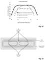To overcome the reduction of the efficiency with wider coils (in the y direction), in an embodiment shown inFIG.11, to themain coil520, we have added a series ofinner coils540 comprising extra loops of several turns each in the central area of the main coil. These inner coil or coils are created by extending one end of the same Litz wire that the main coil is made of and forming the inner loops in a manner that both the main coil and the inner coils have the same clock-wise or counter-clock-wise wire turn and pattern so that during each cycle of the AC current flow through the main coil and the inner coils in the same clockwise or counter-clockwise direction (as shown by arrows in the Figure and the resulting magnetic field from the coils would add constructively and not cancel each other out along the upper and lower regions of the inner coils. We have found that a series of inner coils with a loop diameter similar to the diameter of typical receiver coils to be used with the charger would enhance the efficiency of the overall charger system. InFIG.12, we show the measured efficiency along lines A and B across the coil structure ofFIG.11 and compare with a similar coil with similar dimensions (190×65 mm) but no inner loop coils and with a similar constructed coil of 190×45 mm dimension. As can be seen, the introduction of the inner loop coils has increased the efficiency of the coil (compared to structure with no loops such as shown inFIG.9 at certain locations (along A lines and their vicinity) by about 10% while providing similar or slightly lower efficiencies at other locations (along B lines and other similar locations in the structure). Furthermore, the efficiency of the coils is flat over a larger segment than other embodiments. For example, along A lines, the efficiency is around 68% over a ±10 cm distance from the centerline exceeding the performance of other coil patterns or structures. The main reason for this increase of efficiency is that by introduction of the inner coils in the charger coil, we have increased the coupling coefficient between the charger and a typical receiver coil at most locations of the coil thus increasing the wireless power transfer efficiency between these coils. As we have shown, it is possible to increase the efficiency and position freedom of the system by incorporating the inner coils in to the coil structure. To illustrate the reason for reduction of efficiency along the B lines, inFIG.11, we have shown the direction of current flow in the wires or paths in the main and the inner coils during half a cycle of the AC applied current. The lower efficiencies along B lines are a result of the current in the inner coils along 2 adjacent loops traveling in opposite direction (as shown in the left coil) at these locations and thus the resulting magnetic field during any half cycle of the applied AC current cancelling any beneficial effect of introduction of the loops into the structure. To overcome this, in an embodiment shown inFIG.13, it is possible to introduce additional similar or different loop coils with centers along the B lines with similar current flow direction (clockwise or counter-clockwise) to “fill in” these lower efficiency areas. Since these 2 new inner coils Layer2 (580) will overlap the 3 existing inner coils Layer1 (560), they would be wound on a separate layer (layer2) on top of or below the other inner coils thus there will be some physical overlap between the 2 layers of inner coils. Similarly, in a PCB coil design, multiple PCB layers or a combination of wires and PCB or stamped or formed, etc. coils or paths can be used to build these more complex structures.