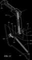 FIG.29 shows a simplified representation of analternative cable assembly400 for connecting the rotation of parallel shafts without using a roller chain. Such a cable assembly could be used to eliminate the need for sprockets and to replace thechains345 and346. Thecable401 is wrapped one or more revolutions aroundshafts402 and403 and is clamped to theshafts402 and403 withclamps404 and405 respectively. Theshaft403 may be located at theaxis301 and theshaft402 at theaxis101. (In an alternative embodiment that is similar to the eccentric sprocket embodiment described above, one or more of the shafts may be provided with a cam where the cable wraps around the shaft. In such an embodiment, the angular orientation of the foot panel can vary from horizontal, but is constrained in relation to the mid panel so that it is a function of the angular orientation of the main panel in relation to the arm.) A tensioning mechanism similar to that used with the roller chain may be used including cable ends406 and407 and a threadedmember408.
