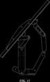 As shown inFIG.24, the opening control mechanism includes four portions marked A, B, C and D. An arm portion C is pivotally attached to thearm panel11 so that it pivots aboutaxis350. In a preferred embodiment, the arm portion C is located outside of the lateral sides of the mid panel, and it is preferably disposed within an arm. The arm portion C preferably extends fromaxis350 toaxis301 and beyond so as to provide leverage for aspring331 or the like acting thereon. A main panel portion B is directly attached to the mid (or main) panel and is disposed substantially (preferably entirely) inside the lateral sides of the mid panel. The main panel portion B extends to encompass bothaxis301 andaxis101. A connecting portion D extends alongaxis301, and connects the arm portion C with the main panel portion B. A foot-panel portion A is directly attached to the foot panel and encompassesaxis101. The foot panel portion A is disposed substantially (preferably entirely) inside the lateral sides of the foot panel. Thespring331 creates a torque aboutaxis350, and the opening control mechanism transmits torque fromaxis350 toaxis101 and the foot panel portion A. In an alternative embodiment, one or both of the foot-panel and main-panel portions are attached to the lateral sides of the foot panel and main panel respectively.