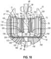 FIG.20 depicts an end cross-sectional view of the end effector ofFIG.3 with an exemplary staple cartridge removably installed into a channel of a lower jaw of the end effector, showing the staple cartridge having various biasing features; and