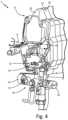 FIG.5 is an exploded view from the interior of the sprayer showing features of the door that interface with the front cover.