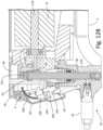 The perspective view ofFIG.10 and the cross sectional views ofFIGS.12A-C show various additional components ofsprayer2. For example, the views show thatpump assembly24 includescylinder110 within whichpiston90 reciprocates, as driven bymotor23, to pump paint. The cross sectional views ofFIGS.12A-C also show thatshaft114 driven bymotor23 engagesinput gear116.Input gear116 is affixed rotationally toshaft114 and is rotatably coupled tooutput gear96, which is coupled to coupler94 (sometimes referred to as a yoke). As best depicted byFIG.10,output gear96 includeseccentric shaft117 that is offset from a rotational axis ofoutput gear96 and extends into an egg-shaped bore ofcarrier118.Carrier118 is allowed to slide along at least onerail120, which is restrained by one or both ofend bell12 andfront cover18. A bearing122 can be positioned betweeneccentric shaft117 andcarrier118 to reduce frictional forces generated by the relative motion ofcarrier118 andoutput gear96.