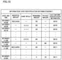The history information sent to the information manager500 in the step S126 includes the following sets of information as shown inFIG.14A: slot machine identification information for identifying a slot machine which has generated the history information; date and time of each game; an inserted amount if money was inserted at the start of the game; a game result (e.g., type of winning); an inserted monetary amount (which is an amount read from anIC card1500 when theIC card1500 was inserted, is an amount identified by the bill validator1022 (FIG.8) when money was inserted, or is a total amount when both theIC card1500 and money were inserted); a remaining amount (including both a remaining amount of a payout counter as a result of the game and a remaining amount of the credit counter); a payout amount (an amount rewritten into the IC card1500 (membership information card or non-membership information card) from the credit counter and paid out); and information card identification information (e.g., information unique to each card such as a number “001”) by which the IC card1500 (membership information card or non-membership information card) to which these sets of history information are stored is specified. When the associatedIC card1500 has already been inserted into theslot machine1010 before the game play, theIC card1500 is a member card or a non-member card owned by the player in advance. Therefore “SUCCESSIVE USE 1” is associated with the information card identification information of the history information (e.g.FIG.14B) and the history information is transmitted. Meanwhile, when noIC card1500 is inserted before the game play, information “SUCCESSIVE USE 0” indicating that the history information is associated with a non-membership information card newly ejected from thecard stacker1742 is associated with the information card identification information of the history information and the history information is transmitted.