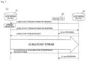 In addition, “(2) multicast stream information response” may include the fact that distribution has been completed if the corresponding multicast stream has already been distributed due to a request from another edge server (MC/UC)92. “(4) multicast stream request” may be omitted.
