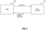 Thus, a choice must be made regarding what the optimal DAQ parameter configuration should be, subject to the constraint that there are limitations on which parameters are feasible or admissible. In terms of related art practices for DAQ parameter configuration, there is generally an initial one time configuration operation (fix the sampling rate, bits per sample, and number of analog inputs to collect data). This may be periodically adjusted, but generally is not related to the real-time application performance.FIG.5 illustrates an example of setting the parameters in place for the DAQ, where before a digital signal is sent from theDAQ102 to theIoT gateway103, the parameters for the DAQ are set in place for a significant amount of time.