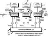 Thus, according to one embodiment,CNodes202,204,206 do not directly apply client requests to their respective states, but rather redirect them as proposals to theCoordination Engine208 for ordering. Updates to the CNodes are then issued from theCoordination Engine208 as an ordered set of agreements. This guarantees that everyCNode202,204,206 is updated when the client requests changes from one of them, and that the updates will be transparently and consistently applied to all CNodes in the cluster.