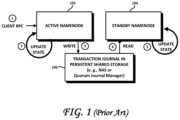 - 3. writes the update as a journal transaction in shared persistent storage106 (such as a Network Attached Storage (NAS) comprising one or more hard drives) and returns to the client a notification of success.
