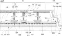 Apassivation layer130 is formed on thepassivation layer128 to cover the patternedconductive layer144. In some embodiments, thepassivation layer130 can be formed by using deposition techniques. The deposition techniques can include, for example but are not limited to, ALD, PVD, CVD, MOCVD, epitaxial growth, or other suitable processes. The passivation layers128 and130 can collectively serve as apassivation structure126.