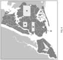 FIG.6 depicts a map illustrating non-limiting examples of sub jurisdictions within a larger geofenced region;