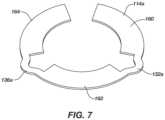 FIG.8 is an illustration of acircular circuit180 that can be used as thedistal circuit180 of thespring assembly100. Thecircuit180 includes the threelarger portions178 and twosegments186 as illustrated and described in relation toFIG.4. Each of the threelarger portions178 is an annular sector of thecircuit180. Two of theannular sectors178 are separated by anopening188 in thecircuit180.