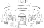 Similarly, the local servers described herein may be incorporated into the jukeboxes. For example, the local servers may appear to function independently, even though they exist as part (e.g. partition) of an integrated mass storage device within the jukebox. Indeed, as hard disks become larger and less expensive, they may preferably serve the functions of local servers.