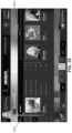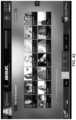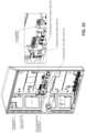 FIGS.54-59 show the core being latched into place using a lever, in accordance with an exemplary embodiment. They also show the core sliding on the bottom support and along alignment guides such that good electrical, electromechanical, and/or other connections are formed. More particularly,FIG.54 is a front elevation view of theFIG.48 example jukebox with a section line referenced inFIGS.55-56;FIG.55 is a cross-sectional view through the section line shown inFIG.54, with the example core ofFIG.49 being located in the jukebox shell and with the lever in an unlocked or “core up” position; andFIG.56 is a cross-sectional view through the section line shown inFIG.54, with the example core ofFIG.49 being located in the jukebox shell and with the lever in a locked or “core latched” position.FIG.57 is a front elevation view of theFIG.48 example jukebox with a section line referenced inFIGS.58-59;FIG.58 is a cross-sectional view through the section line shown inFIG.57, with the example core ofFIG.49 being located in the jukebox shell and with the lever in the unlocked or “core up” position; andFIG.59 is a cross-sectional view through the section line shown inFIG.57, with the example core ofFIG.49 being located in the jukebox shell and with the lever in the locked or “core latched” position.