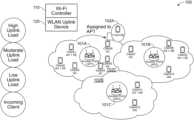 The Wi-Fi controller110 manages communications and directions to access points, in support of uplink bandwidth management. For example, station assignments can be transmitted to access points by the Wi-Fi controller110. Uplink statistics, RSSI measurements, and current uplink loads may be sent to the Wi-Fi controller110 periodically so that when assignments are analyzed, the information is already on hand for other management tasks. In other operations, the Wi-Fi controller110 connects access points when the join the network and tracks particular stations as they roam between different access points or connect at different times. User accounts can also be maintained across the network and different devices, with respect permissions and privileges. Additional details for the Wi-Fi controller110 are discussed below in association withFIG.2.