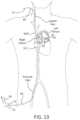 Next,extension guide wire74 is gently retracted, causing the bridgingelement12 to follow through the vasculature structure. If theoptional exchange catheter28 is used (as shown inFIGS.12A-12B), theextension guide wire74 retracts through the lumen of theexchange catheter28 without injuring tissues. Theextension guide wire74 is completely removed from the body at the femoral vein, leaving the bridgingelement12 extending from exterior the body (preferably at the femoral sheath), through the vasculature structure, and again exiting at the superior vena cava sheath. Theextension guide wire74 may then be removed from the bridgingelement12 by cutting or detaching the bridgingelement12 at or near the interface coupling800 between the bridgingelement12 andextension guide wire74. The anterior end of the extension guidewire74 is attached to one end of the bridging element (e.g., suture material) while the other end of the bridging element is attached to the posterior anchor, which is retained within a posterior anchor delivery catheter115. As can be seen inFIG.12B, theextension guide wire74 is gently retracted, causing the bridgingelement12 to follow into theexchange catheter28 and through the vasculature structure.