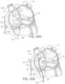 FIGS.3A and3B are anatomic anterior perspective views of the left and right atriums, with portions broken away and in section to show the presence of an implant system with an inter-atrial bridging element that spans the mitral valve annulus between a posterior anchor positioned in the great cardiac vein and an anterior anchor within the inter-atrial septum, which is suitable for delivery with catheter systems and delivery methods of the invention.