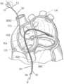 1. Exemplary Implantation MethodsAccess to the vascular system is commonly provided through the use of introducers known in the art. A 16F or less hemostasis introducer sheath (not shown), for example, may be first positioned in the superior vena cava (SVC), providing access for theGCV catheter50. Alternatively, the introducer may be positioned in the subclavian vein. A second 14F or less introducer sheath (not shown and described above) may then be positioned in the right femoral vein, providing access for theLA catheter60. Access at both the SVC and the right femoral vein, for example, also allows the implantation methods to utilize a loop guide wire. For instance, in a procedure to be described later, a loop guide wire is generated by advancing a LA guide wire through the vasculature until it exits the body and extends external the body at both the superior vena cava sheath and femoral sheath. The LA guide wire may follow an intravascular path that extends at least from the superior vena cava sheath through the interatrial septum into the left atrium and from the left atrium through atrial tissue and through a great cardiac vein to the femoral sheath.