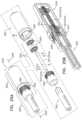 For clarity, the right-hand portion of each part (i.e., parts A, B and C) ofFIG.33 shows handle24 decoupled from other elements ofhandle portion101, such ashandle22, whereas the left-hand portion showscatheter14 disposed withincatheter12 and extending out ofdistal end102 thereof. It is to be understood (e.g., from descriptions hereinabove and hereinbelow) that, in reality, whencatheters12 and14 are in such an arrangement, handle22 is typically coupled to handle24 (e.g., viasystem1700 and/ormechanism3400; e.g., viaprotrusion1724 being coupled to housing1702).