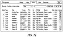 FIG.22 illustrates an embodiment of the screen ofFIG.21 displaying a pulse library area.