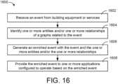 FIG.16 is a flow diagram of a process where an event of building equipment is enriched with contextual information of a graph that can be performed by the cloud platform ofFIG.1, according to an exemplary embodiment.