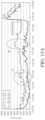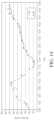 FIG.15A is a graph illustrating the in vivo experimental results from implantation of aGroup1 sensor (one 0.029″ electroactive surface area per electrode). The Y-axis represents raw counts and the X-axis represents time. The data collected from each electroactive surface is shown as a line (E1, No GOx and E2, No GOx). Please note that the data represents only the noise component of the signal. No analyte component was detected, due to the lack of GOx in the portions of the membrane adjacent to the electroactive surfaces. Referring now toFIG.19A, the noise signal detected by each of the working electrodes (E1, E2) fluctuated widely throughout the implantation time. The amplitude of the noise component detected by E2 was substantially greater than the noise component detected by E1. For example, referring to the data circled by oval A, the noise signal peaks detected by E2 were substantially greater than those detected by E1. Additionally, the noise fluctuations between the two working electrodes were not always in the same direction. For example, referring to the data circled by oval B, the E2 noise signal component increased while the E1 noise signal component decreased. When the sensor was challenged with acetaminophen (drug consumption indicated by the arrow), both electrodes registered a substantial increase in noise signal, wherein the shapes of the curves were substantially similar. However, E1 detected a substantially lower total amount of noise when compared with that detected by E2; this difference in signal amplitude (in response to a non-biologic interferent) indicates that the signals (e.g., on the two working electrodes) did not have substantially similar sensitivities.