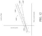 Referring again toFIG.12,regression line1082 is shown for a selected plurality of time spaced signals. In some embodiments, multiple regression lines can be drawn for a plurality of different windows of time spaced signals (e.g., time-shifted windows). In these embodiments, a comparison of a regression line from a first window of time spaced signals as compared to a regression line drawn from a second window of time spaced signals can be used to diagnose a shift and/or drift in sensor sensitivity and/or baseline. For example, inFIG.12,line1082 represents a regression line drawn for a first window of data over a first period of time; dashedline1086 represents a regression line drawn for a second window of data over a second period of time; and dashedline1088 represents a regression line drawn for a third window of data over a third period of time. In this example, dashedline1086 is shifted along the y-axis from thefirst line1082, indicating a drift or shift in the sensor's baseline from the first time period to the second time period; dashedline1088 is shifted along the x-axis from thefirst line1082, indicating a drift or shift in the sensor's sensitivity from the first time period to the third time period. Accordingly, a shift in the regression line can be used to diagnose a shift or drift in the sensor's signal and can be used to trigger a corrective action, such as update calibration and/or re-calibration using any of the methods described herein. Additionally or alternatively, the shift in the line can be used to correct a shift or drift in the sensor's signal; for example, the amount of shift in the line can be used to update calibration accordingly (e.g., the change in y-value between two regression lines can be representative of a corresponding change in baseline between two time periods, and the calibration information updated accordingly). One skilled in the art appreciates that some combination of shift or drift of the baseline and sensitivity can occur in some situations, which can be similarly detected and/or corrected for.