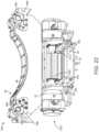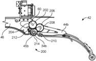 Referring particularly toFIGS.10 and15,grabber assembly42 can include agearing system200 to transfer rotational kinetic energy from one of electric motors154 to a corresponding or associated one ofgrabber arms44. For example, gearingsystem200 as shown inFIG.9 is configured to transfer rotational kinetic energy fromelectric motor154btosecond grabber arm44b. A similar and/or symmetric gearing system can be used at an opposite or distal end ofcarriage46 to transfer rotational kinetic energy fromelectric motor154atofirst grabber arm42.