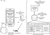 As shown in the user information database, the authentication system maintains user contact information and/or device account information associated with the user devices of User A. For example, the user information database indicates thatUser Device1 is a computer and the authentication system may use an email address to authenticate User A viaUser Device1. The user information database indicates thatUser Device2 is a mobile phone and the authentication system may use a telephone number to authenticate User A viaUser Device2 and/or to authenticate User A via the user account of the application. The user information database indicates thatUser Device3 is a home assistant device and that the authentication system may use an account identifier (@UserA) of an account associated with a platform of User Device3 (Platform X).User Device3, as a home assistant device, may be preconfigured with a home assistant skill that permitsUser Device3 to operate in association with the authentication system. For example, User A may be logged into a device account associated with User Device3 (e.g., a home assistant account platform), and an authentication service skill (e.g., a home assistant application programming interface (API)) associated with the authentication system and/or the application may be enabled and/or activated via the account associated with the platform ofUser Device3.