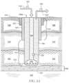 FIG.5C shows thewellbore500cwith anintermediate casing522 established insection516 of the borehole. Theintermediate casing522 may be prepared by pulling out thebottom hole assembly408 and conditioning the borehole (e.g., by flow of anappropriate drilling fluid506, or other fluid, for a period of time). In some cases, thedrilling fluid506 may have a composition with an increased temperature stability, because of the increased temperatures nearer themagma reservoir214. Theintermediate casing522 may be established similarly to theinitial casing504, described with respect toFIG.5A. For example, cement may be flowed down thewellbore500cand allowed to set to secure theintermediate casing522 in place. The cement used to secure theintermediate casing522 may be the same as or different than the cement used to prepare theinitial casing504. Theintermediate casing522 may be made of the same material as theinitial casing504 or a different material (e.g., a different metal or alloy). In some cases, the cement used to establish theintermediate casing522 may have an increased temperature stability compared to the cement used to prepare theinitial casing504. For instance, the cement for theintermediate casing522 may be a temperature-resistant cement. Theintermediate casing522 may be prepared of a material with a relatively high thermal conductivity compared to that of conventional Portland cement, such that heat can be more effectively transferred to thewellbore500cthrough thecasing522. Theintermediate casing522 may be run with centralizers (e.g., bow-spring centralizers) per a centralization program to establish a centeredintermediate casing522. Testing may be performed as described above to confirm the structural integrity of theintermediate casing522. While the example wellbore500chas twocasings504,522, thewellbore500ccould include fewer or additional casings if appropriate to maintain its structural integrity.