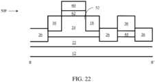 FIG.21B illustrates a fin type MOS device according to another embodiment of the present invention. In order to increase the capacitive coupling efficiency between thegate60 voltage and thefin type body24 potential, thefin type body24 is tapered. Thegate60 voltage controllability to the junction potential between thefin type body24 and the buriedlayer22 may be increased due to the wider fin width near the junction and the angle between thegate60 and thejunction angle23 between thefin type body24 and the buriedlayer22 becomes less than 90°.