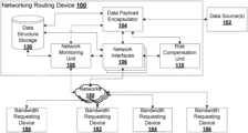 Expected packet loss and latency spikes are measured and reported to the samenetworking routing device100, and the information may be packaged and maintained such that thenetworking routing device100 and/or the data sources have an estimation of potential bandwidth availability. In other words, thenetworking routing device100 of some embodiments is configured to generate, by a series of automated or semi-automated probing processes, on-line modeling of the connection (network) characteristics and using the knowledge to implement real time “network blending”—and in extreme cases, provide complete fail over between connections. In some embodiments, thenetworking routing device100 tracks, atnetwork monitoring unit108, whether the connection is even providing a promised level of reliability as provided through periodic probes of thenetwork connections150. For example, if a news broadcaster purchases a network connection that promises a bandwidth of 150 Mbps at any given time, it is able to periodically probe or test thenetworks150 to observe if the promised maximum throughput is possible.