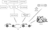 FIG.121 is a diagram of an example of resource sharing in a vehicle communication network in a distributed system. The system includes avehicle1884, anothervehicle1886,home1888, and Internet coupled devices. Each of thevehicle1884 andother vehicle1886 includes thenetwork fabric1892, processingresources1894 and1918 (e.g., processing modules, CPUs, ECUs, video decoding modules, video encoding modules, etc.),memory1896 and1920, and agateway1898. Thehome1888 includesprocessing resources1900 andmemory1902. The Internet coupled devices includememory1904, processingresources1906,servers1908, automobile meta-factor1910 or services, and/orautomobile repair services1912.