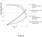 FIG.9 is a graph showing glucose consumption vs. ammonium production in the presence of traditional media having a 4 mM L-glutamine concentration (and a 1 g/L glucose concentration) compared to experimental low glutamine media conditions having a 0.5 mM L-glutamine concentration (and a 1 g/L glucose concentration).