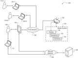 Optionally, other users116-1 . . .116-N (N≥1; collectively “other users116”) may also participate in a real-time communication session, either in person or via their computing devices120-1 . . .120-N(collectively “other computing devices120”). Themobile computing device104 can directly communicate withfirst computing device124, such as via a short-range wireless communication network128 (hereinafter “first network128”). For example, thefirst network128 may be Bluetooth or WiFi Direct. In some implementations, thefirst computing device124 can be coupled to adisplay136 of amedia system132 and thus can act as a wireless access point. In such implementations, thedisplay136 can be a non-smart display, i.e., a display that is not itself configured to connect to thefirst network128. Themedia system132 can be associated with a physical conference or meeting room. Other example components of themedia system132 include a set ofspeakers140 and a set ofcameras144.