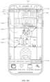 A touch-sensitive display in some embodiments oftouch screen112 is described in the following applications: (1) U.S. patent application Ser. No. 11/381,313, “Multipoint Touch Surface Controller,” filed May 2, 2006; (2) U.S. patent application Ser. No. 10/840,862, “Multipoint Touchscreen,” filed May 6, 2004; (3) U.S. patent application Ser. No. 10/903,964, “Gestures For Touch Sensitive Input Devices,” filed Jul. 30, 2004; (4) U.S. patent application Ser. No. 11/048,264, “Gestures For Touch Sensitive Input Devices,” filed Jan. 31, 2005; (5) U.S. patent application Ser. No. 11/038,590, “Mode-Based Graphical User Interfaces For Touch Sensitive Input Devices,” filed Jan. 18, 2005; (6) U.S. patent application Ser. No. 11/228,758, “Virtual Input Device Placement On A Touch Screen User Interface,” filed Sep. 16, 2005; (7) U.S. patent application Ser. No. 11/228,700, “Operation Of A Computer With A Touch Screen Interface,” filed Sep. 16, 2005; (8) U.S. patent application Ser. No. 11/228,737, “Activating Virtual Keys Of A Touch-Screen Virtual Keyboard,” filed Sep. 16, 2005; and (9) U.S. patent application Ser. No. 11/367,749, “Multi-Functional Hand-Held Device,” filed Mar. 3, 2006. All of these applications are incorporated by reference herein in their entirety.