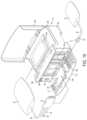FIG.25 is a right front perspective view of a carriage drive assembly and cap stripper in a first embodiment;