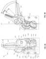 Additionally, thetool carriage320 may actuate a set of articulated movements of the end effector, such as through a cable system or wires manipulated and controlled by actuated drives (the terms “cable” and “wire” are used interchangeably throughout this application). Thetool carriage320 may include different configurations of actuated drives. For example, the rotary axis drives may include a motor with a hollow rotor and a planetary gear transmission at least partially disposed within the hollow rotor. The plurality of rotary axis drives may be arranged in any suitable manner. For example, thetool carriage320 may include six rotary drives322A-322F arranged in two rows, extending longitudinally along the base that are slightly staggered to reduce width of the carriage and increase the compact nature of the tool drive. As clearly shown inFIG.3B, rotary drives322A,322B, and322C may be generally arranged in a first row, while rotary drives322D,322E, and322F may be generally arranged in a second row that is slightly longitudinally offset from the first row.