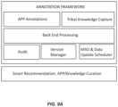 FIG.9A is a schematic diagram of a system to annotate MSOs in a signal expression of a graph using acquired tribal knowledge according to an embodiment. The system ofFIG.9A may provide a particular framework to capture tribal knowledge that may be incorporated into features of an MSO in an update of attributes of the MSO and/or an update of attributes of a specific item of knowledge relating to the MSO (e.g., an item of knowledge that is pointed to and/or referenced by the MSO) This may enable multiple advantages in addition to the curation of labelled knowledge. For example, processes in processing system500 (FIG.5A) may process annotations capturing tribal knowledge through various analyzers/pipelines to update processing pipelines and/or ML/AI models associated with particular MSOs. Thus, the next time such an MSO is triggered (e.g., in the course of accessing items of knowledge referenced by a KG and/or ontology containing the MSO), updated processes may come into play. In an embodiment, an MSO that may be curated in this fashion may provide a self-contained tuning parameter, thereby possibly removing and/or reducing any necessity of retraining entire models if a new MSO is introduced to a KG and/or ontology, or if a new knowledge domain is introduced. As described below, user annotations may also be used to curate a knowledge graph and related applications, such as to highlight an important insight/summary. According to an embodiment, the system ofFIG.9A may enable a framework capture tribal knowledge as annotations of items of knowledge (e.g., obtained from knowledge sources514) in the course of creating and/or updating MSOs for a KG and/or ontology. Here, particular applications App Annotations may be deployed on one or more computing devices (e.g., employing one or more graphical user interfaces (GUIs)) to enable an operator/user (e.g., expert and/or person with tribal knowledge) associate tribal knowledge with aspects of obtained knowledge items. Back end processing at one or more computing devices may incorporate captured tribal knowledge in the process creating and/or updating MSOs. As an annotation framework updates an MSO, certain sanity checks may be implemented so that updates provide meaningful additions and do not disrupt working MSO's and/or affected models. A Version Manager may keep track of updates to particular MSOs so that if the updates produce undesirable results, a previous version may be restored for better results for a particular customer. As multiple operators/users may annotate and/or add tribal knowledge, the updates to an MSO and related items of knowledge may be done following completion of audit checks based on a schedule, for example. According to an embodiment, audit checks may also constrain certain MSO updates that are not beneficial and/or violate a policy. In a particular implementation, annotations of tribal knowledge may be tracked according to individuals making such annotations and/or times that such annotations were made, for example. Changes to MSOs from capture of tribal knowledge from time to time may be managed by a version manager, and a mechanism to schedule incorporation of tribal knowledge in an existing KG and/or ontology.
