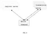 - S301: starting the device terminal, sending a register information query message to the register server first, obtaining a transmission server list corresponding to the device terminal, in which the transmission server is configured to represent a transmission server list that can be connected with device terminal, when the device terminal is starting;