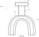 In yet another embodiment of the present invention illustrated inFIG.13, anaccessory device818 includes alocking feature822 in the form of a post extending from the front surface821 of a patient fixation portion in the form of amouthpiece820. The post may be coated with an adhesive substance that will adhere to the LT thermoplastic material. For example, a coating of poly-caprolactone (PCL) will allow the portion of the LT thermoplastic material in contact with the locking feature to stick adhesively to the accessory device. As would be understood by those of skill in the art, the combination of an adhesive with any of the aforementioned configurations for the locking feature or variations thereof would further facilitate fixation of the accessory device to the hardened LT thermoplastic material.