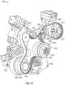 According to the exemplary embodiment shown inFIGS.15-19, theFEAD800 is configured as an electrified FEAD (“E-FEAD”) having a dual-belt drive arrangement. TheFEAD800 can be selectively driven by either the engine610 (e.g., in a first mode or state) or the motor/generator822 (e.g., in a second mode or state). Accordingly, theFEAD800 and, therefore, the driving of the accessories can be transitioned between an electrified state or mode and an engine-driven state or mode. When theFEAD800 is in the electrified state or mode, theFEAD800 can operate independently of operation of theengine610. For example, when theFEAD800 is in the electrified state, theFEAD800 and accessories thereof can operate even when theengine610 is off or in-operational, thereby operating independently of theengine610. In another example, when theFEAD800 is in the electrified state, theFEAD800 can operate to drive the accessories of thevehicle10 while theengine610 operates to drive other driveable elements or systems of thevehicle10 such as the wheels of theaxle assemblies500, thereby operating independently and simultaneously with operation of theengine610.