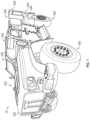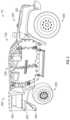 As shown inFIG.21, power conversion hardware1014 (e.g., a DC/DC converter) is coupled to therear module400 and structured to convert DC power received from either theIMG700, the motor/generator822, and/or theESS1000 and convert the DC power to power usable by the vehicle systems (e.g., 12 V, 24 V, and/or 48 V). Apower panel1016 is also coupled to therear module400 and provides a chargingplug1018 that can be used for plugging theESS1000 into an external power station for charging. Additionally, thepower panel1016 can include external power output that receive cords, plugs, or other power connections configured to provide power to external components and systems. AnAC power system1020 includes inverters that convert (i) available DC power from theIMG700, the motor/generator822, and/or theESS1000 into AC power for consumption by components of thevehicle10 and/or external systems and/or (ii) AC power from theIMG700 and/or the motor/generator82 into DC power for consumption by components of thevehicle10 and/or external systems. In some embodiments, the chargingplug1018 is an external plug positioned above the rear, driver side wheel well of therear module400.